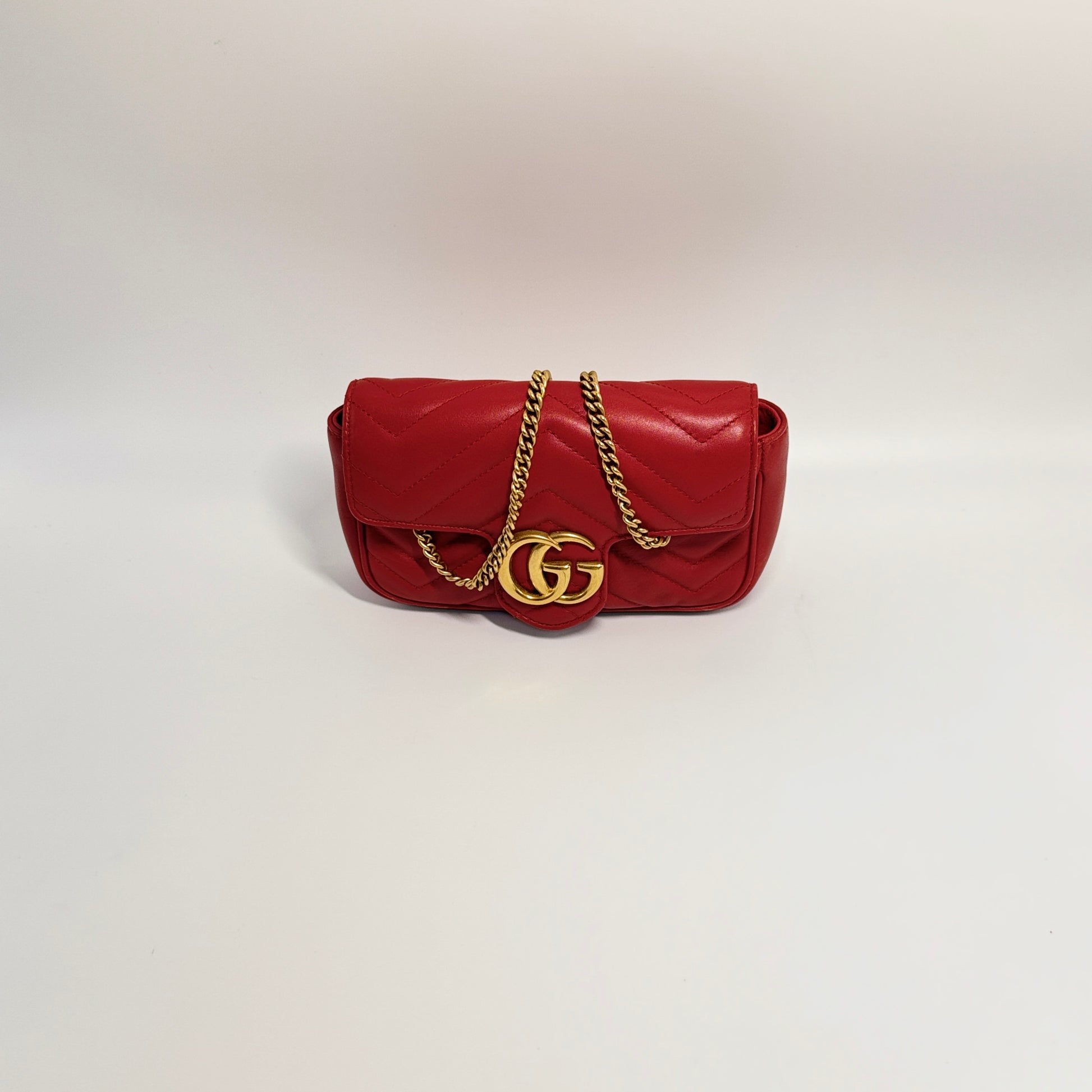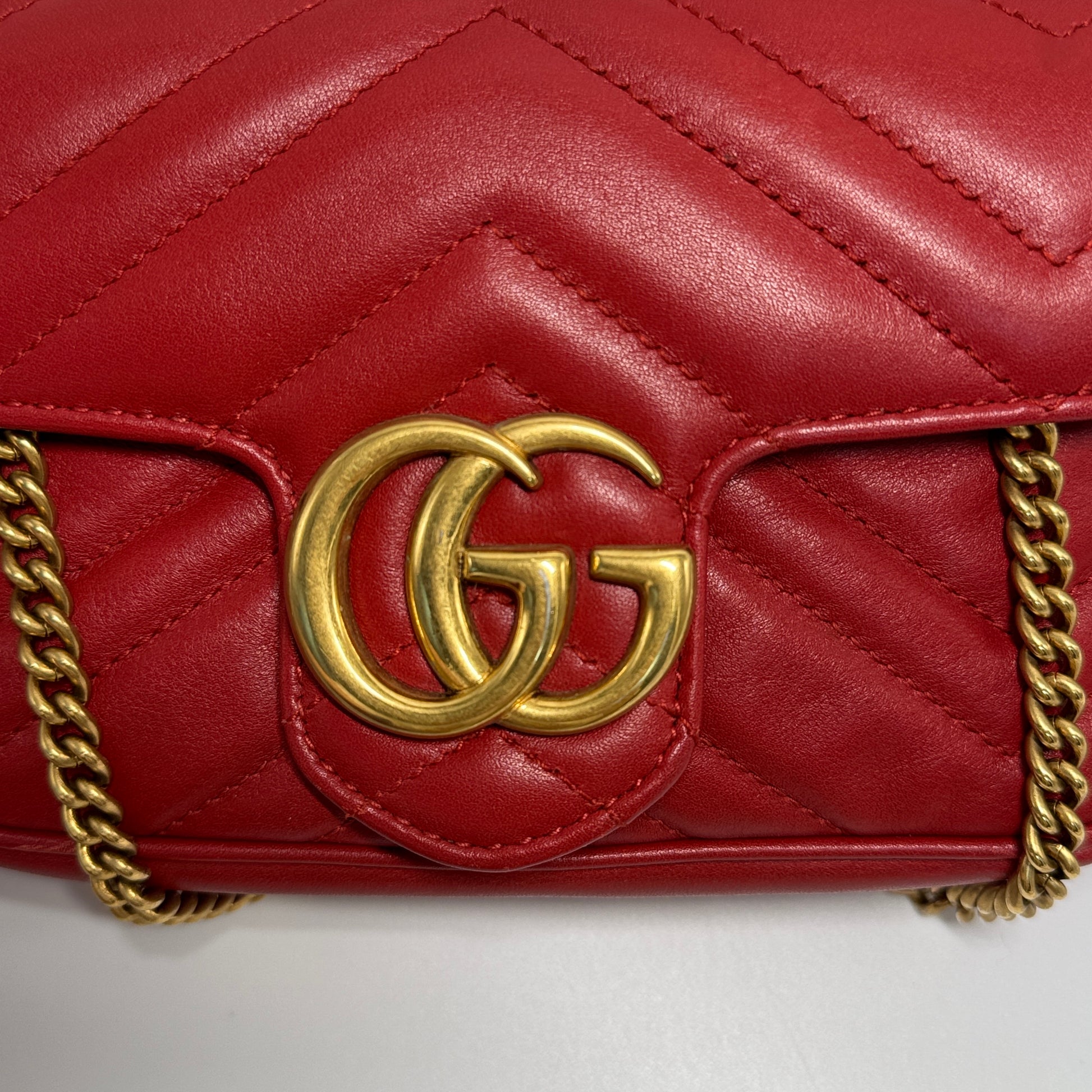 Calfskin Matelasse Super Mini GG Marmont Shoulder Bag Hibiscus Red