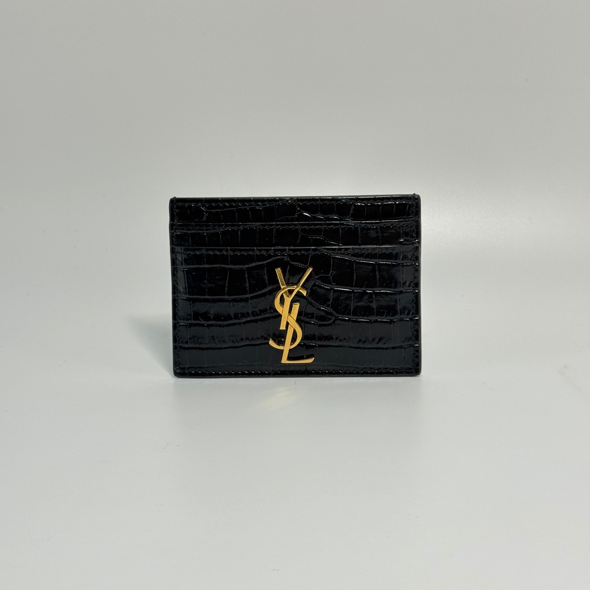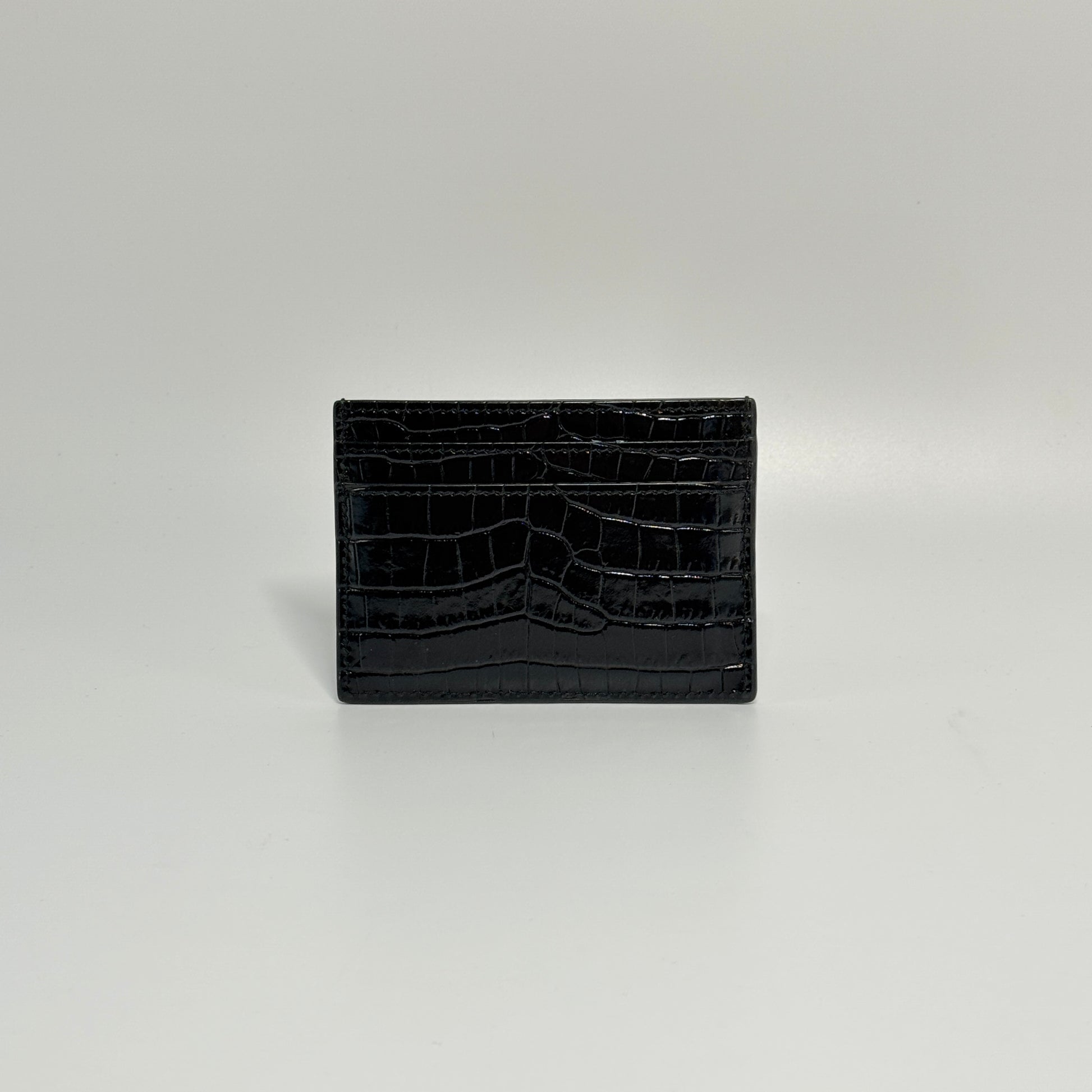 CASSANDRE card case in crocodile-embossed shiny leather