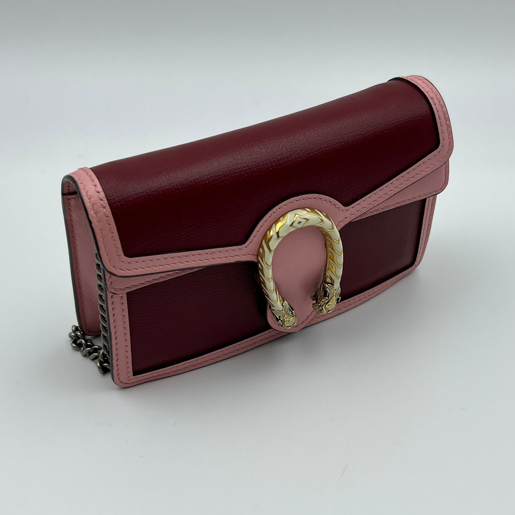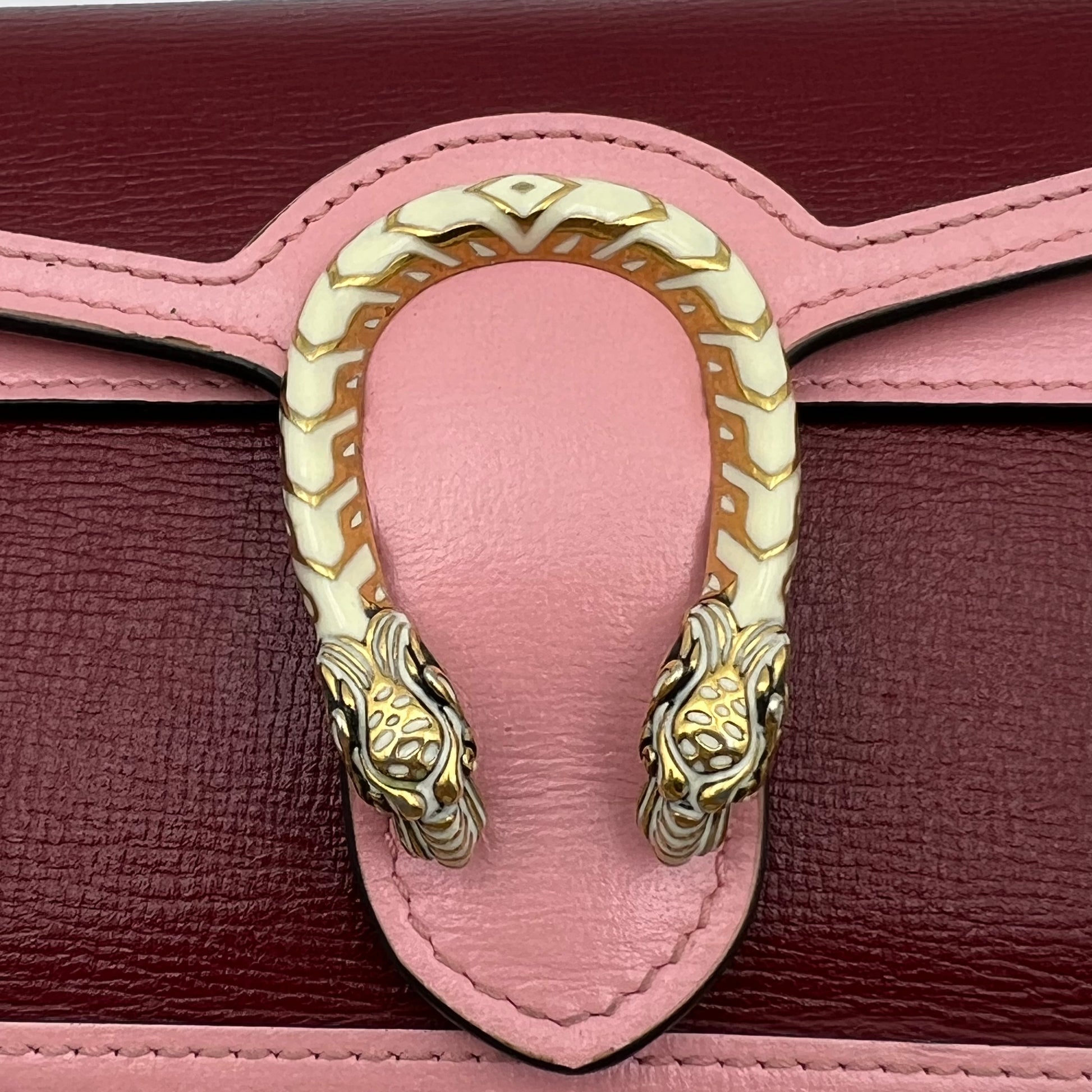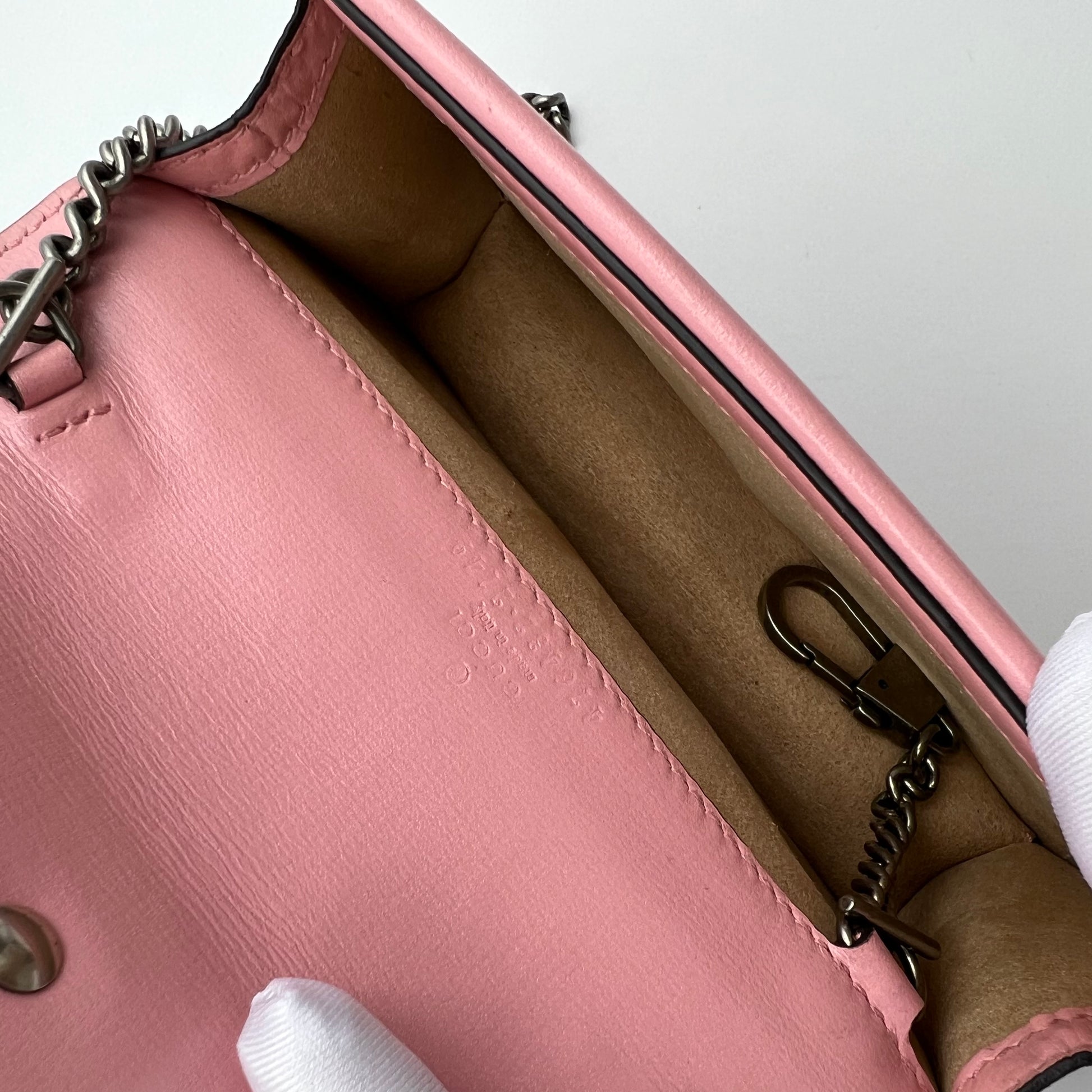 The pink leather bag is absolutely stunning! The texture of the leather is soft and luxurious, and there are no visible signs of wear. The overall quality is top-notch, and it looks brand new.