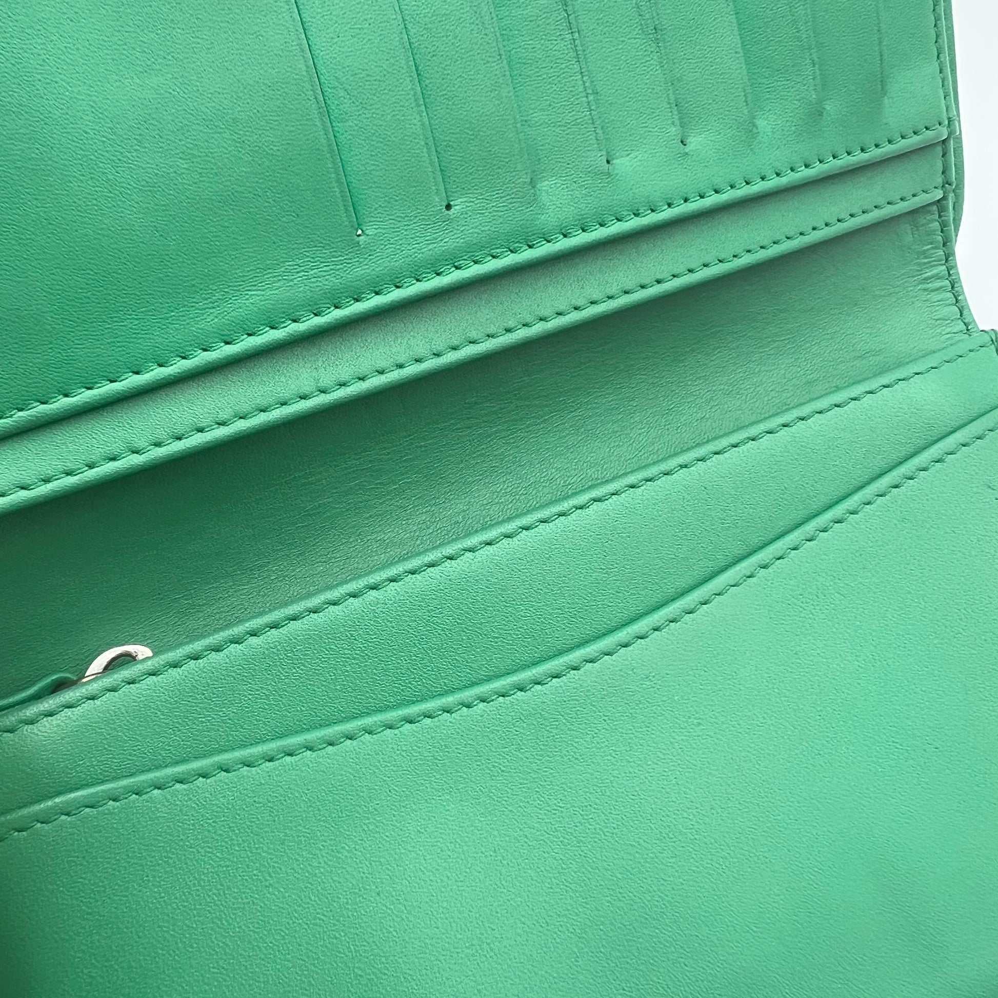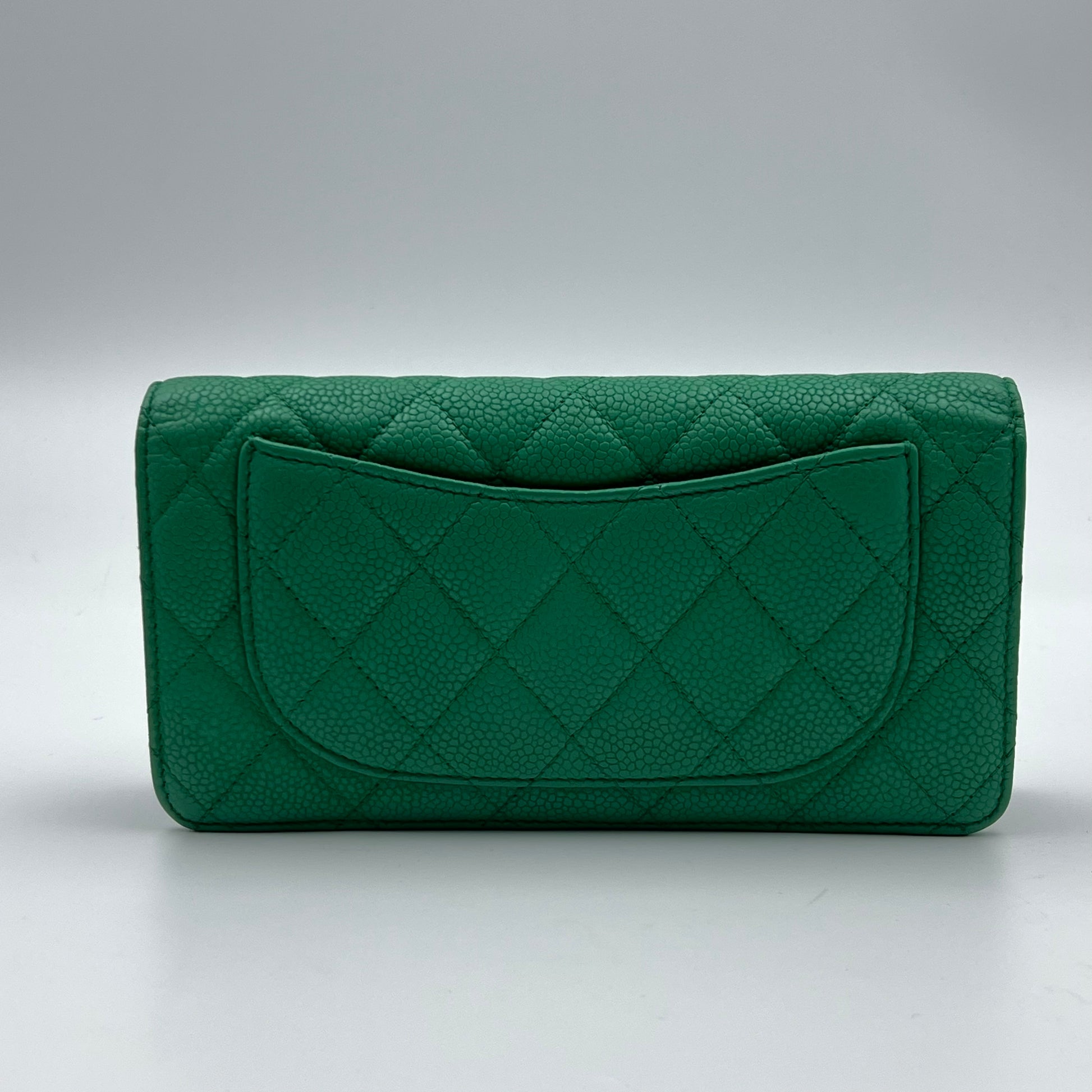 Matelasse Caviar Leather Long Wallet Green